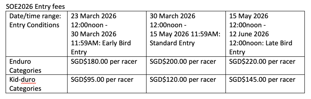 SOE2026 RACERS REGISTRATION WILL OPEN ON 23 MARCH 2026, 12.00 NOON.